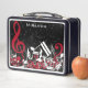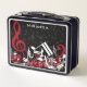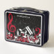 Jumbled Music Notes Red Gray and White on Black Metal Lunch Box