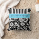 This chic pale blue, black, and white floral damask and striped pattern 20"x20" pillow has customizeable text that says "Live, Love Laugh" on it, but you can customize it however you want. If you have any requests, please email niteowlstudio@gmail.com.