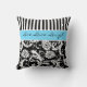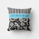 Jumbo Blue Black White Stripes Damask Pillow