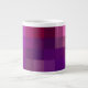A stylish Jumbo-sized Coffee or Soup Mug with an abstract pattern of pink, blue and purple squares, from a digital design by Judy Adamson.