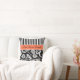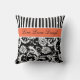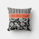 This chic orange, black, and white floral damask and striped pattern 20"x20" pillow has customizeable text that says "Live, Love Laugh" on it, but you can customize it however you want. If you have any requests, please email niteowlstudio@gmail.com.