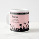 Extra large school graduation celebration mugs with cool students throwing their graduation caps in the air and great text layout you can personalize with your name, graduation date, and even your school name. The pink background can be customized to any color so this can be a graduation mug for girls or boys, men or women.