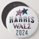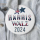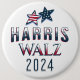 Huge Democrat button in support of Kamala Harris and Tim Walz for president and vice president in 2024 US presidential election.