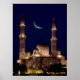Night shot of the most famous mosque of Dubai. Scan of a double exposed composition in 135mm color film.
