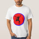 This bold graphic t-shirt features a silhouetted figure frozen in mid-jump, framed by a vivid red circle with a striking blue outline — a visual punch that radiates movement, vitality, and expressive freedom.