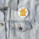 This round button badge features a joyful cream-colored Syrian hamster leaping with open arms —