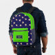 Backpack with funny jumping cupcakes on dark blue background