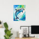 Jumping Dolphin Ocean Waves Watercolor Poster