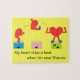 The heart is jumping because it is excited to be near the one it loves- the recipient of this puzzle. Customizable. Original work; (c) Sharon Lee Hudson. All rights reserved.