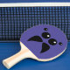 A paddle for ping pong, featuring a happy jumping spider face. The purple background colour can be changed.