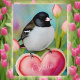 This adorable Valentine is created especially for bird lovers! A cute Junco sits on a personalized heart, with a garden of pastel tulips in the background. A bit of grain across the picture gives is a vintage feel with a modern color palette. In postcard format, they fit the oldschool card exchange aesthetic.