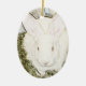 Ceramic oval ornament depects a full color sketch of a pretty white rabbit baby still in the nestbox.