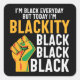This square sticker features a yellow, red, and green black power raised fist, as well as white and yellow all-caps wording that reads "Juneteenth, I'm black every day, but today I'm blackity black black black black," and is the ideal outfit to commemorate Emancipation Day on June 19, 1865, or support the African-American community.