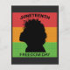 Juneteenth Freedom Day design illustration in Red yellow and green colors with textured Juneteenth Flag Pattern background with African American Girl graphic. Juneteenth the real independence day or freedom day of black African American people. Celebrate liberation and abolition of slavery in United States. June 19, 1865 is the date when the news of abolition of slavery reached the states of texas. Perfect gift idea for friends, boyfriend or girlfriend etc. perfect design for holiday card, sticker, mug, buttons, banner, poster, flyer or tee shirt etc.
