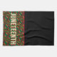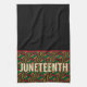 Kitchen towel is shown in a festive Juneteenth art print in celebration.