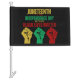 Make a statement on the road and show your support for Juneteenth with this eye-catching car flag. The design features three fists in the colors of the Pan-African flag - red, green, and yellow - symbolizing unity, strength, and pride. The text reads "Juneteenth is my independence day because Black Lives Matter," making a bold statement about the significance of this holiday and the Black Lives Matter movement. This high-quality car flag is durable, weather-resistant, and easy to install on your car, truck, or any vehicle. Let your voice be heard and your message be seen with this powerful Juneteenth Pan-African Fist Car Flag.