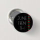 A Juneteenth celebration button. The button is red, black, and green with the background in black with white letters.
