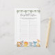 Jungle animals themed baby shower ABC's race game card features a watercolor jungle animals illustration and watercolor greenery eucalyptus garland and elegant handwritten style font.