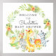 Welcome your guest in style with our cute baby shower welcome sign featuring a cute elephant, giraffe, monkey, zebra & lion framed with jungle leaves & hibiscus flowers.