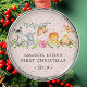 Cute baby's first Christmas ornament the sweetest little jungle animals set on a pink damask background.