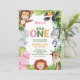 Jungle Animals Girl Wild One 1st Birthday Invitation