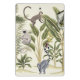A clipboard with a jungle pattern featuring lemurs, monkeys, and sloths among tropical plants, rendered in a detailed, illustrative style with a muted color palette.