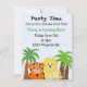 The cutest little tiger and a friendly lion with a big mane accent this fun jungle themed birthday invitation. Palm trees blowing in the background. Customize with all of your personal information as desired. A fun zoo animal invitation.