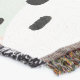 A quality printed throw has its advantages. This is a much finer weave throw than its loopier cousins, and though lighter, it is worth the investment for custom room accessorizing. The back is much prettier than the typical brown, and the fringe on the long sides very vivid, the selvage nicely done. Before photographing, I washed the throw in cold water, delicate, with a thicker woven throw the same size. On tumble dry low, this throw was dry in half the time as the other. This is a very practical quality if you use throws for furniture covers or to wrap up in frequently. The sleekness of the fabric makes it a great layer for accenting or protecting without the feeling of sitting on too much stuff. Perfect for napping or when you feel a light chill coming on. The color printing is beautiful and on this fabric, matched the design and color of my Photoshop image. This is an advantage for blending room fabrics and colors. The fringe on the short sides prints the colors from the design image and therefore varies from the side fringe. I streaked a white fractal line through the plaid pattern to give the illusion of weaving. This printed as crisp as an illusory thread, and put some white in the short side fringe, showing another advantage of print vs loomed- for artistic purposes, line lines, detail, and color integrity can be planned and preserved. My loomed throws have color limitations and more of a needlepoint texture. Print throws reproduce an exact image. The throw felt a little stiff straight out of the package, but this went away in the first delicate wash. Of course I searched the wash water for ink or bleeding and there was none.