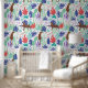 Colorful jungle flowers and leaves featuring big cats' seamless pattern.