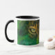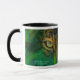 Hidden deep inside, a wild surprise, you are being watched by jungle eyes. This painting of jaguar eyes surrounded by jungle leaves, makes a striking and unique art mug for home or office. Design is also available as a fine art poster or print, an artcard, iPad,iPod, and iPhone cover, mousepad, and other items.