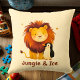 Add a touch of adventure to your child's room with this charming throw cushion featuring a playful lion and penguin duo. The unique "Jungle & Ice" message and warm pastel background make this cushion perfect for creating a cozy and fun atmosphere in any nursery or kids' room. A great addition to your child's space, combining the magic of the wild and the arctic.