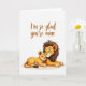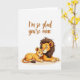 This greeting card features two stylized jungle felines cuddled close near the bottom of a white background, their bodies a warm golden yellow with gentle shading that makes them look soft and comforting. The larger feline has a dark brown mane with textured strokes, eyes closed, and a small smile, leaning into the moment like a calm, protective friend. Tucked against its chest, the smaller feline rests with the same closed-eyed smile, their cheeks lightly blushed as if sharing a quiet, affectionate secret ❤️. The rounded shapes and smooth linework keep the scene simple and tender, drawing attention to the closeness between them. Near the top, the message “I’m so glad you’re mine” is centered and written in an orange-brown, flowing style that feels warm and intimate. The text sits well above the pair, leaving plenty of open space so the illustration feels airy and uncluttered. A tiny 🌼 touch comes through in the soft rosy cheek color and the gentle curve of both mouths. The larger feline’s mane frames its face in deep brown while the two golden forms overlap slightly at the bottom of the card.