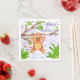 Some cute paper napkins for a kid's birthday party with the whimsical illustration of a jungle monkey and the words "Happy Birthday !" © ArianeC Illustrations