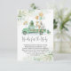 Adorable books for baby card featuring elegant watercolor greenery, adorable jungle animals and festive green and gold balloons.
