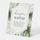 Jungle Safari Animals Baby Shower Diaper Raffle Pedestal Sign features watercolor baby safari animals withs masks and jungle greenery.