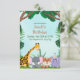 Tropical Safari themed birthday invitation. invite family and friends to your event with this customized birthday party invitation. It features animal illustrations of an adorable lion with tropical leaves and foliage. This invitation is perfect for summer, tropical and safari theme birthdays.