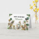 Adorable safari-themed birthday card featuring cute jungle animals, festive balloons and rustic watercolor greenery. Matching items available in our store!