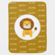 Custom name baby blanket by PiccoGrande featuring a cute lion in a circle on one side, and monkey on palm tree with short custom text: on the other side.
