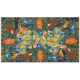 Asian jungle print with blue Indian roller birds, tiger, sun bear, monkey and peacock. Warm reds, oranges, brown, blue, green, and yellows.