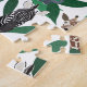 This cute and modern pattern is perfect for the animal lover. It features hand-drawn safari animal illustrations including zebras, elephants, and giraffe with jungle leaves on top of a simple white background. The color scheme includes forest green, bright green, gray, brown, yellow, black, and white. It's a trendy and fun pattern. Enjoy this hand-drawn illustration pattern done by the artist of La Femme, Rachel Matheney.