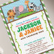 Jungle Zoo Animal Safari Joint Twins Birthday Invitation
