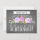 Ask your bridesmaid with a beautiful card that says "I can't say 'I do' without you." This bridesmaid card features lovely watercolored flowers and a mix of modern typography, all on a trendy chalkboard background. Make it easy for them to say yes with this beautiful and stylish card. Available in maid of honor, matron of honor, junior bridesmaid, and flower girl versions. Say thank you with a matching thank you card.