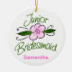 Junior Bridesmaids gifts, t-shirts, jewelry and wedding party keepsakes you can personalize with the Jr. Bridesmaid's name or other text. Design features a pretty pink and green flower.