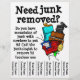 A unique, bright, and friendly flyer to help find work removing other people's junk and garbage. The bold, clean design is attention grabbing and all the text is FULLY CUSTOMIZABLE to whatever you may need.