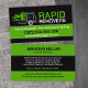 Professional Junk Removal & Hauling Business Card Template – perfect for junk removal services, hauling companies, debris removal, waste disposal, and cleanout businesses. Business card is featuring bold design, strong typography, and industry-relevant graphics, making it ideal for companies specializing in residential and commercial junk removal, furniture hauling, appliance disposal, construction debris cleanup, and eco-friendly waste recycling.