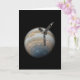 The NASA Juno space probe was launched in 2011 on a mission to study the planet Jupiter. It entered a polar orbit of Jupiter in 2016 to measure gravity, magnetic fields and thermal radiation. Juno is powered by three large solar panels the provide electricity to the spacecraft. Its mission has been extended until July 30, 2021, at which time Juno will be deorbited into the atmosphere of Jupiter so that it doesn’t accidentally contaminate any of the Jovian moons. Juno is shown soaring over the south pole of Jupiter.