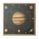A captivating celestial diagram featuring a large, Jupiter-like planet at the center, encircled by planets and cosmic bodies in precise concentric orbits. Set against a deep starry background with a detailed grid and numerical markings, this astronomy-inspired ceramic tile is perfect for space enthusiasts, stargazers, and lovers of planetary science. An ideal gift for celestial events, solstices, and those fascinated by the mysteries of the cosmos.
