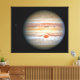 Image of Jupiter and the icy moon Europa, taken by the Hubble Space Telescope. Hubble’s sharp view is giving scientists an updated weather report on this huge planet’s turbulent atmosphere, including a new storm brewing, and a cousin of the Great Red Spot changing color again.