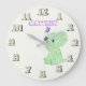 Add a name and title to this cute dinosaur baby (from the Jurassic period or stoneage) wall clock. Ideal for a dinoaur themed baby boy or girl nursery, young child's bedroom. Colors are subtle grey and turquoise green with purple. Stoneage look numbers.