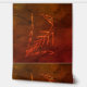 A simple random, unstructured, fractal image resembling the fossilized skeleton of a raptor dinosaur or, perhaps, the bird-like Archeopteryx; superimposed on a dark stone background.